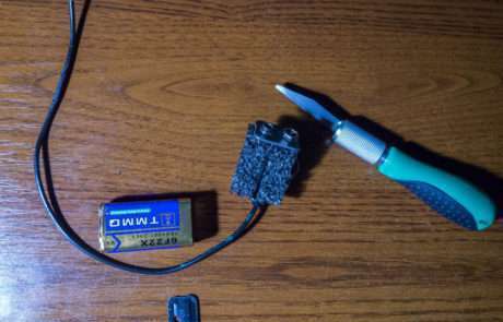 Хорошо, что у меня на полках были и гнезда для аккумуляторов 18650, и сами аккумуляторы, и севшая батарейка Крона. Еще мне понадобилась термоусадка, пластиковые стяжки, кусачки, паяльник и час времени.