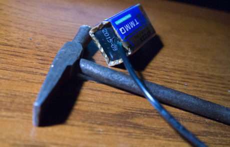 Поскольку переделка не должна отразиться на состоянии корпуса МД, я решил не подпаиваться к клеммам прибора, а использовать для подключения литиевых аккумуляторов к металлоискателю муляж батарейки Крона. Первым делом нужно удалить внутренности из старой Кроны. Для этого ножом подгибаем завальцованный нижний край, потом плоскогубцами или круглогубцами выравниваем его, и наконец, нажатием на пластину контактов выдавливаем содержимое из корпуса батарейки. Обратите внимание, батарейка должна быть свежая. Потекшие батарейки не подойдут, поскольку их проблематично отмыть от электролита.